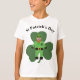 Esta Camiseta de Meninos é ideal para celebrar o Dia de São Patrício, ela apresenta um desenho verde de desenho animado com um Shamrock sobre um fundo branco.