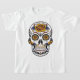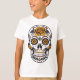 Uma bela imagem gótica de um crânio mexicano com flores decoradas no dia do estilo morto. Isso é definido em relação a um fundo de cor personalizável.