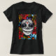Um dia floral vibrante da imagem inoperante decora este t-shirt bonito. Jóia rica as flores tonificadas cercam a cara de uma mulher pintada para o dia mexicano do morto. Customizável com seu próprio texto na parte traseira da camisa. Uma imagem muito corajosa, original e impressionante em uma camisa da qualidade. Disponível em todas as opções do tamanho, da cor e do estilo. Que você está esperando?