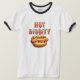 Trazer cachorro quente com picles e mostarda com vibrações antigas e aspas, "Quente Diggity."