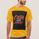A design de camiseta apresenta uma pilha de notas com uma marque de comédia ao fundo. É uma tomada humorística da ideia de pagar por entretenimento.