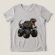 A prehistoric predator meets monster truck power! This design features a fierce Velociraptor dinosaur driving a massive monster truck with huge tires and an unstoppable attitude. Perfect for dinosaur lovers, monster truck fans, and anyone who enjoys fun creature truck designs. Great for kids, teens, and adults who love dinosaurs, off-road trucks, and bold artwork.