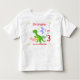 Uma divertida camisa de design de dinossauro para bebês com 4 dinossauros e estrelas. A Camisa T pode ser personalizada com Nome, idade e uma mensagem curta.