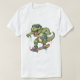 Um T-Rex de desenho animado fazendo um truque de skate no ar, usando óculos de sol e tênis, língua para fora de excitação, desenhado em um estilo de desenho animado de streetwear divertido com contornos grossos e cores vibrantes de grafite.