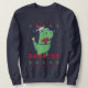 T-Rex Padrão Feio de Natal. Design de dinossauro engraçado para aqueles que amam T-rex. Uma mercadoria bonita e incrível para o amante de os animais comemorando o Natal e aproveitando a estação de inverno. Perfeito para esta época festiva e feriado alegre. Design de estilos de suéter bonitos, como um suéter, com uma ilustração do T-rex que veste o chapéu Santa e os Enfeites de natal de carregando.