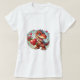 Camiseta dinossauro fofo segurando flores, cercado de coraç