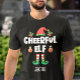 Esta hilária e autoirônica camiseta elfo alegre, que faz parte de uma coleção de roupas elf da família que combina com presentes para cada membro da família, vai ajudá-lo a entrar no espírito de feriado. Perfeito para qualquer reunião de família de Natal, esta camiseta divertida apresenta um bonitinho chapéu de elfo e pernas minúsculas, com a legenda "Elfo alegre" em uma fonte branca contemporânea de bonés. A camisa é facilmente personalizável com qualquer nome.