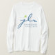 Esta camiseta branca de manga longa mostra a Liga Júnior de Raleigh na frente.