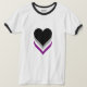 T-Shirt com design de corações em cores de assexualidade; preto, cinza, branco e roxo, bandeira do orgulho de listras, design do arco-íris