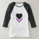 Camisa T de Raglan, Capa 3/4, com design de corações em cores de assexualidade; preto, cinza, branco e roxo, bandeira do orgulho de listras, design do arco-íris