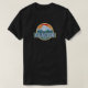 Camiseta do Parque Nacional da Geleira Montana pôr do sol retrô, Montanhas e floresta. Visite os Parques Nacionais de Montana, camping, pesca, Desfrute de nossos Parques Nacionais. Montanhas no Parque Nacional da Geleira. Adicione este design a outros produtos.