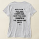 As mesmas palavras de motivação nos lados frontal e traseiro da camisa-T em diferentes fontes/layout. Citação: "Você não pode agradar a todos, mas você pode ignorar os incômodos."