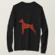 Uma silhueta do Pinscher do Doberman nos corações. Os t-shirt, suam, ganhos do presente da novidade.