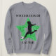 Camiseta do treinador de futebol com o nome dela! Possui uma garota jogando silhueta de futebol pronta para chutar uma bola de futebol, sobre uma estrela verde, porque no campo você e sua equipe são super estrelas de futebol!