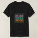 Uma fonte simples e ousada, em branco ou preto, centrada em uma camiseta simples. A frase "Dólar faz sentido" é o único elemento.