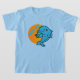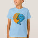 Bright blue dolphin on an orange sun gradient, pointing forward with bold outlines. Retro vibe, playful motif ideal for summer tees, kids apparel, and ocean lovers.
