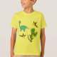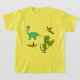 T-Rex, um dinossauro azul e feliz Pterodactyl roam ao redor desta colorida camiseta de meninos.