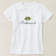 Uma camisa divertida para a festa de solteira. O texto diz 'Bridesmaid' com uma imagem de sinos de casamento em um falho ouro brilhante.