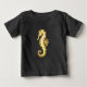 Artista, polígono, cavalo marinho espumante, folha de ouro sobre fundo negro.