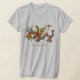 Um dragão de desenho animado e uma libélula branca fazem um dueto engraçado. Dois dragões, e ambos podem voar. Esta ilustração química é em castanhos, dourados, laranja, com um azul pálido por baixo, e o texto diz "Dragões". Você pode editar o texto para criar seu próprio presente personalizado com a camiseta dizendo. Você também pode excluir a libélula se quiser apenas uma imagem de dragão de solteiro. Precisa de ajuda, envie um email para lilly@lillyarts.com