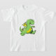 Dragão verde de desenho caminhando sobre os pés de trás. Com um sorriso no rosto feliz, tenha sorte. Deixem que este design de crianças humorísticas entretidas faça a conversa por vocês.
