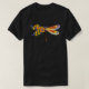 Pintura artificial, libélula floral em laranja e roxo contrastantes com papoila amarela, brilhante e florescente da Califórnia e flores silvestres azuis em fundo branco.