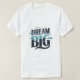 Este design de camiseta destaca a frase "Dream Big" em letras ousadas e elegantes. O texto é centrado e ligeiramente curvo, dando à design um fluxo dinâmico. A fonte tem um estilo moderno e elegante com um gradiente que transita de azul profundo para turquesa clara, evocando uma atmosfera sonhadora e etérea. Ao redor do texto estão formas sutis, como nuvens e estrelas pequenas, reforçando o tema dos sonhos e aspirações. O fundo é branco limpo, fazer o design sobressai. De um modo geral, o design é inspirador e estimulante, perfeito para aqueles que querem expressar uma mentalidade positiva e ambiciosa.