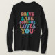 Warm reminder message with colorful hand lettering on a dark background. A gentle and emotional phrase that encourages safe driving and shows care, love, and connection for family, friends, and loved ones.
