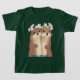 Uma ilustração esbranquiçada de uma lontra lúdica com duas flores delicadas descansando sobre a cabeça. A lontra tem uma expressão alegre, com olhos brilhantes e curiosos e uma boca ligeiramente aberta que acrescenta ao seu charme. Seu pelo é macio e texturado, com uma mistura de tons castanhos claros e escuros que lhe dão uma aparência natural, mas animada. As flores são vibrantes, sendo uma margarida rosa e a outra um girassol amarelo, suas pétalas contrastam lindamente com o pelo da lontra. O fundo é um gradiente suave de azul e verde, evocando um ambiente ribeirinho pacífico.
