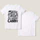 Esta design do Halloween apresenta a frase brincalhona "Witch Melhor Ter Meu Docinho" organizada em um layout dinâmico e de várias fontes. A palavra "Bruxa" é exibida em letras grandes e negrito, enquanto "Melhor" é escrita em um guião cursivo e fluente, acrescentando um senso de urgência e diversão ao design. A frase "Tenho o meu" está incluída em uma faixa, enfatizando ainda mais a demanda. A palavra "Candy" destaca-se no fundo em letras grandes, em bloco, com pequenas ilustrações do crânio integradas ao design. Elementos adicionais do Dia das Bruxas, como vassoura-bruxa, morcego, estrela e doces embrulhados, são espalhados pela composição, melhorando o sentimento assustador e festivo.