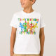 Camisa colorida divertida com imagem de figuras dançantes, e texto "É o meu Partay de Vamos de aniversário!".