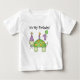 Uma tartaruga de sorriso verde bonito que veste um chapéu do partido leva uma vela iluminada do aniversário em sua parte traseira e o texto lê-a "é meu aniversário". Um balão do hélio leva o número 1 neste design bonito do primeiro aniversario!