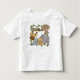 T-shirt dos animais da selva do bebê, canecas, bodysuits, cartões, etiquetas, sacolas, e outros roupa e presentes animais da selva que caracterizam um macaco, um elefante, um girafa, um leão, e um hipopótamo.