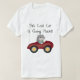 Um gato em um carro e em um texto vermelhos que leia "este gato legal é lugares indo!" em t-shirt do design do gato, em canecas, em cartões, em etiquetas, em sacolas, em chaveiro, e em outros iems.