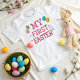 Celebrate your baby's first Easter with this charming t-shirt filled with tenderness and joy. It features "My First Easter" in delicate pink cursive letters, with a texture that mimics beautiful hand embroidery, evoking a special, handcrafted style. To complete the design, cute Easter eggs add a fun, festive touch. The perfect way to capture this sweet moment!