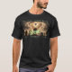 Os detalhes intrincados de cada indivíduo são obscurecidos, deixando apenas os contornos e posturas inconfundíveis de formas humanas transfixos pelo evento celestial que se desenrola diretamente sobre a cabeça. O braço de um pai está estendido, aparentemente apontando o eclipse para seu filho. Casais se inclinam, banhados na coroa esmaecida do sol. É uma imagem poderosa de nossa espécie unida pelo cosmos em um antigo ritual de ver o dia se virar rapidamente à noite. Os únicos detalhes visíveis são os da maravilha, do espanto e de um olhar universal elevado em direção aos céus e mistérios acima. Um design de camisa que comemora não apenas o notável alinhamento astronômico, mas também a experiência humana compartilhada de testemunhar juntos um fenômeno tão inspirador como um.