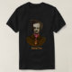 Edgar Allan Poe, aterrorizado, a ver um inseto de ouro a subir na gravata. Desenho colorido da caneta de tinta. Texto personalizado.