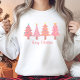 Entra no espírito de férias com esta camisola acolhedora e festiva de gala feminina! Apresentando um adorável design de árvores de Natal cor-de-rosa giras e a frase "Feliz Natal" em uma letra de escrita caprichosa, esta camisola traz um toque divertido e feminino ao seu estilo sazonal. Suave, confortável e perfeito para tudo, desde decorar a árvore até colher cacau quente, é uma adição obrigatória ao seu guarda-roupa de férias. Também faz um presente alegre para qualquer um que ama um visual confortável e fofo de Natal!