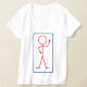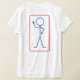 Esta é uma t-shirt feminina, com uma figura de palitos a dar o dedo médio na frente e atrás, uma a vermelho e outra a azul.