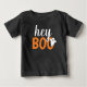 A design gráfica moderna e fofa do Halloween "Ei Boo" apresenta texto em letras laranja e brancas com um pequeno sotaque fantasma. Disponível em vários estilos e tamanhos para toda a família.