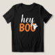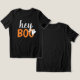 A design gráfica moderna e fofa do Halloween "Ei Boo" apresenta texto em letras laranja e brancas com um pequeno sotaque fantasma. Disponível em vários estilos e tamanhos para toda a família.