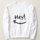Legal design com uma seta sorridente e a citação "Ei".