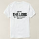 Esta t-shirt branca apresenta o texto "dar aos Obrigados do LORD" numa mistura de letras de blocos laranja e castanho e letra de escrita. Abaixo, lê-se "para ele é bom" e "PSALM 107:1" em uma fonte laranja menor. A design expressa uma mensagem de gratidão e faz referência a um verso da Bíblia.
