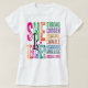 Esta design apresenta uma camiseta branca com o texto "ELA É PROFESSORA" e uma coluna de palavras: FORTE, ESCOLHIDA, BONITA, CAPAZ, VITORIOSA, NUNCA, EXCELENTE. O design também inclui referências de script.