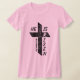 Bíblia Cristã Verse design do Evangelho de Mateus 28:6 com uma imagem cruz angustiada e parte do verso (Versão do Rei James): "Ele está levantado". O verso da camisa também tem um capítulo de Bíblia personalizável e verso: "MATTHEW 28:6". Isso pode ser alterado se desejar ou removido se você preferir nenhum texto no verso.
