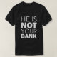 Um design gráfico humorístico e brincalhão que apresenta uma imagem de desenho animado de um banco porquinho com a frase "Ele não é seu banco" escrita em letras ousadas e chamativas. Perfeito para adicionar um toque divertido a qualquer equipamento ou acessório.