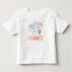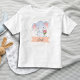 Um elefante de aquarela fofo segurando flores cor-de-rosa, fácil de personalizar com o nome do bebê em caligrafia cursiva.