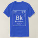 Um design de Berkelium, que respira. Berkelium é um elemento químico radioativo transurânico com o símbolo Bk e o número atômico 97. É membro da série de elementos actinídeos e transurânio. É batizado a partir da cidade de Berkeley, Califórnia, onde foi descoberto em dezembro de 1949 o Laboratório de Radiação da Universidade da Califórnia. A estética geral do design é nítida e minimalista, com foco na simplicidade e elegância. O uso do branco como a cor primária dá ao design uma aparência limpa e fresca, enquanto a fonte e o círculo negros em negrito adicionam contraste e profundidade. É um design versátil que pode ser vestido por homens e mulheres. É perfeito para aqueles que apreciam ciência, tecnologia e inovação, e que querem expressar sua paixão por esses campos através de suas roupas. Vestido casualmente ou vestido, este design deve fazer uma declaração e provocar uma conversa.