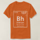 Um design de Bohrium. Bohrium é um elemento químico com o símbolo Bh e o número atômico 107. O nome é do físico dinamarquês Niels Bohr. É um elemento sintético (elemento que pode ser criado em laboratório, mas não se encontra na natureza) e radioativo; o isótopo mais estável conhecido, 270Bh, tem meia-vida de aproximadamente 61 segundos. A estética geral do design é nítida e minimalista, com foco na simplicidade e elegância. O uso do branco como a cor primária dá ao design uma aparência limpa e fresca, enquanto a fonte e o círculo negros em negrito adicionam contraste e profundidade. É um design versátil que pode ser vestido por homens e mulheres. É perfeito para aqueles que apreciam ciência, tecnologia e inovação, e que querem expressar sua paixão por esses campos através de suas roupas. Vestido casualmente ou vestido, este design deve fazer uma declaração e provocar uma conversa.