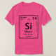Uma T-Shirt Silicon de primeira classe. O silício é um elemento químico com o símbolo Si e o número atômico 14. Um sólido cristalino duro e quebradiço com um luster metálico de cinza azul, é um metaloide tetravalente. É membro do grupo 14 na mesa periódica, junto com carbono acima dela e germânio, estanho, chumbo e flerovium abaixo. A estética geral do design é nítida e minimalista, com foco na simplicidade e elegância. O uso do branco como a cor primária dá ao design uma aparência limpa e fresca, enquanto a fonte e o círculo negros em negrito adicionam contraste e profundidade. É um design versátil que pode ser vestido por homens e mulheres. É perfeito para aqueles que apreciam ciência, tecnologia e inovação, e que querem expressar sua paixão por esses campos através de suas roupas. Vestido casualmente ou vestido, este design deve fazer uma declaração e provocar uma conversa.